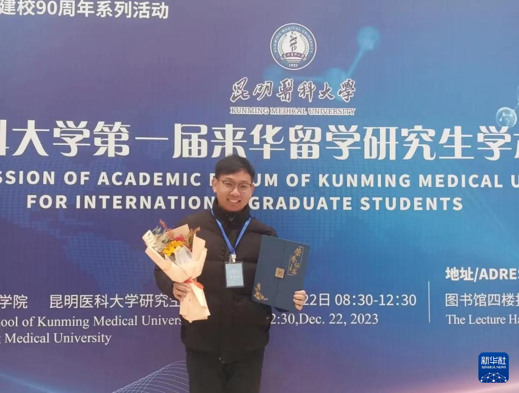 【新華社昆明1月10日】インドネシア・マカッサル出身のジョナドさん(30)は、4年前に中国政府の奨学金を得て雲南省の昆明医科大学に留学、社会医学とヘルスマネジメントを専攻している。