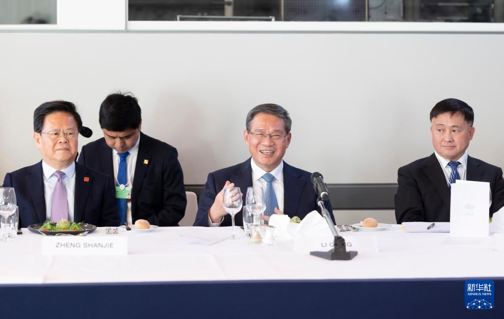中国の李強(り・きょう)国務院総理は16日、スイス・ダボスで世界経済フォーラム(WEF)創設者のシュワブ会長が主催する昼食会に出席し、多国籍企業の責任者と交流した。(ダボス=新華社記者/丁海濤)
