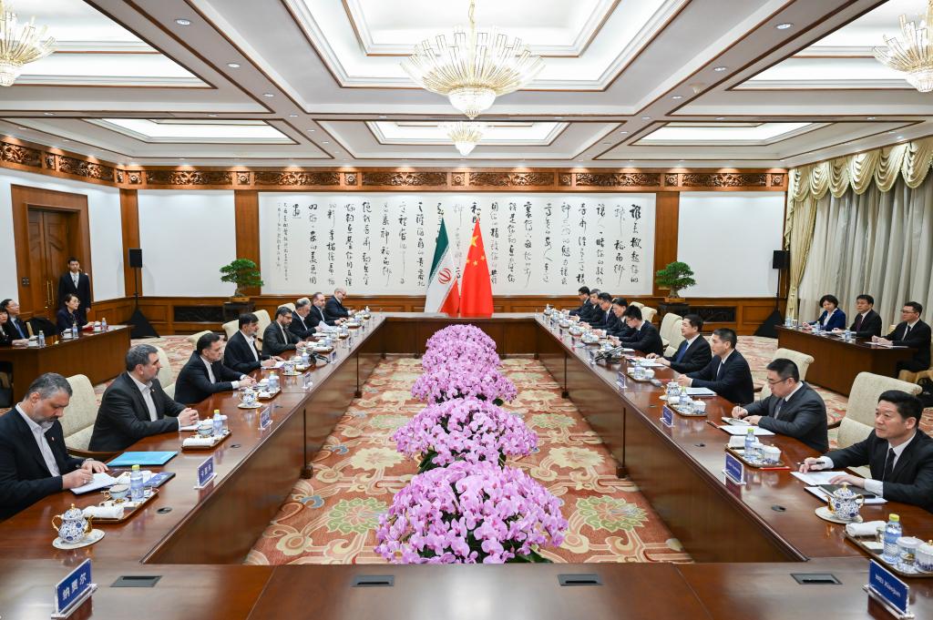 中国の王小洪(おう・しょうこう)国務委員兼公安部長は16日、北京でイランのラダン警察長官と会見した。(北京=新華社記者/張領)