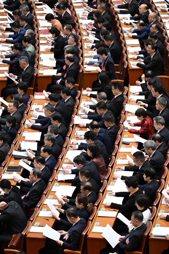 中国の第14期全国人民代表大会(全人代)第2回会議が5日、北京の人民大会堂で開幕した。(北京=新華社記者/黄敬文)