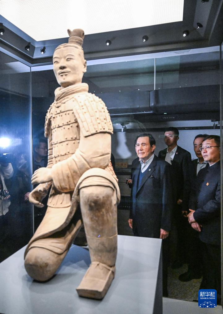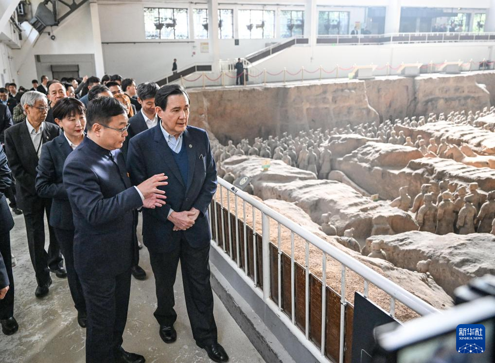 【新華社西安4月7日】馬英九(ば・えいきゅう)元中国国民党主席は6日、台湾青年の一行を率いて陝西省西安市臨潼区の秦始皇帝陵博物院を見学した。
