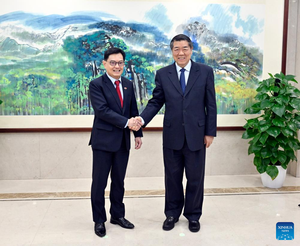 【新華社北京4月11日】中国の何立峰(か・りつほう)共産党中央政治局委員・中央財経委員会弁公室主任は10日、シンガポールのヘン・スイキャット副首相兼経済政策調整相と北京で会見した。