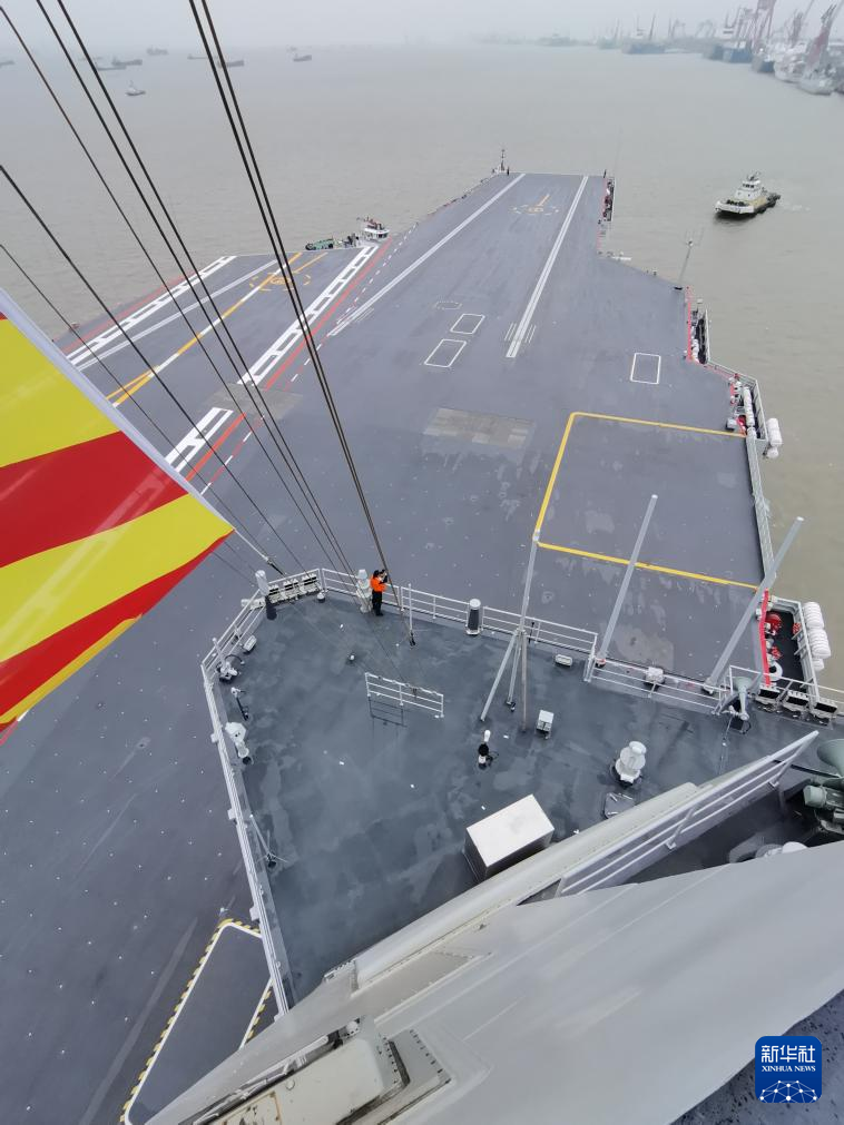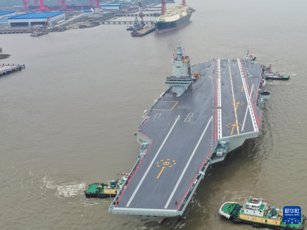 【新華社上海5月1日】中国3隻目の空母「福建」が1日午前8時(日本時間同9時)ごろ、上海江南造船所のふ頭を出発し初の試験航行を開始した。