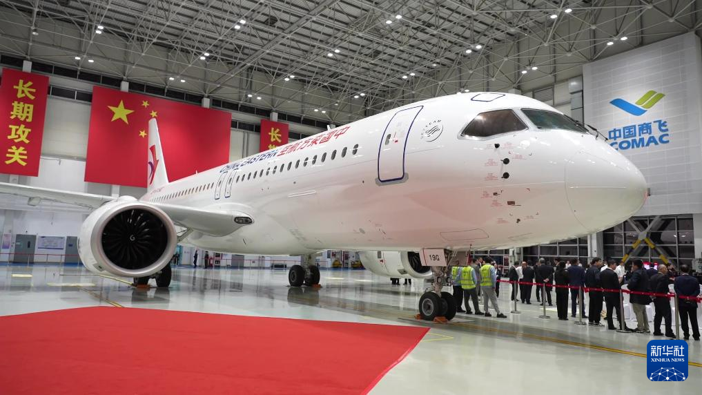 【新華社上海5月29日】中国の国産大型旅客機「C919」が27日、中国航空大手の中国東方航空に納機され、翌28日に上海市浦東新区祝橋鎮の組立工場から上海虹橋国際空港へと飛び立った。東方航空はC919のローンチカスタマー(最初の発注者)として、6機目を受領した。2023年9月に追加発注した100機の第1号機となった。