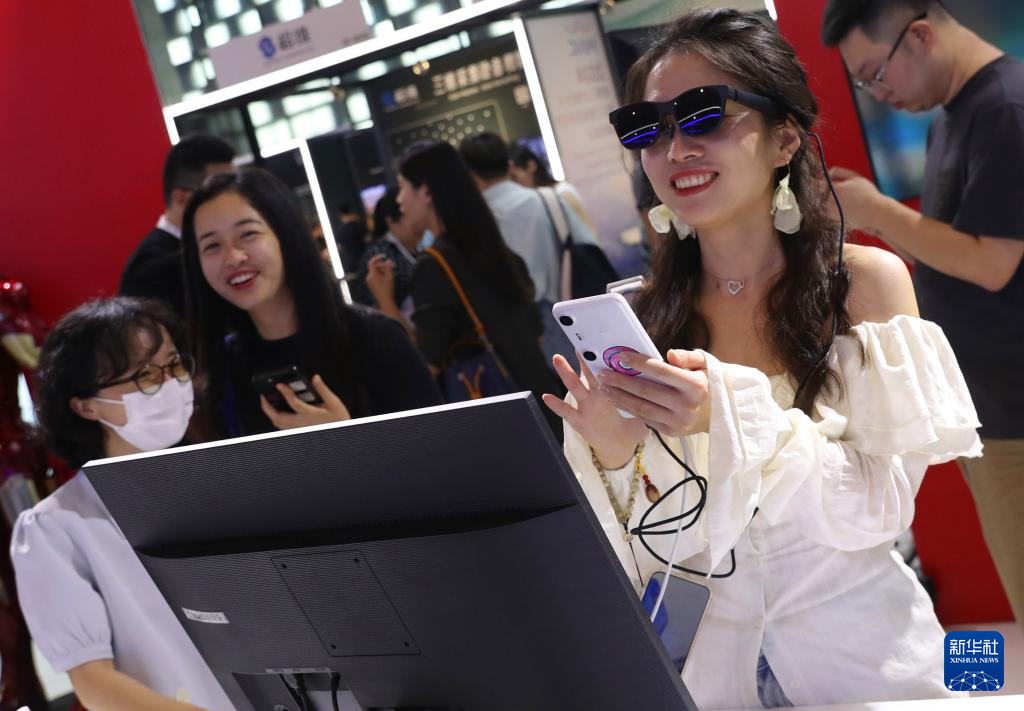 4日、拡張現実(AR)グラスを体験する来場者。(上海=新華社記者/方喆)pagebreak