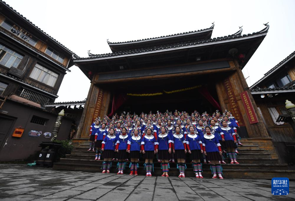 トン族大歌を練習する平岩村の村民。(1月28日撮影、柳州=新華社記者/黄孝邦)