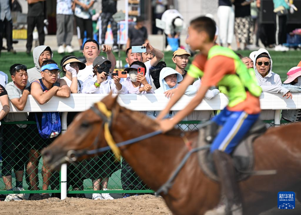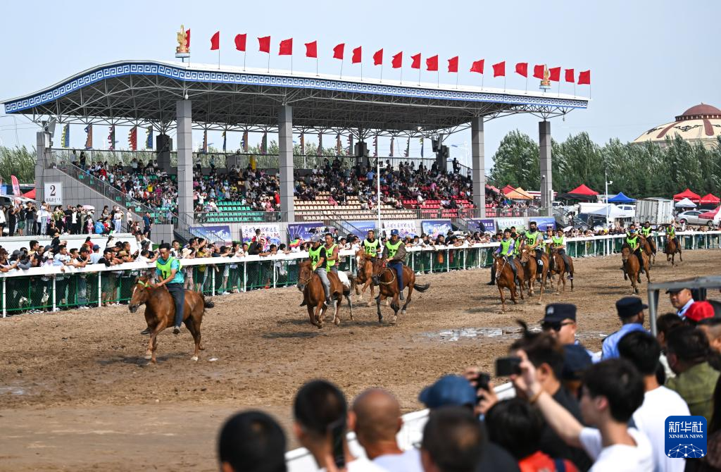 17日、烏蘭毛都蘇木の民族スポーツ総合訓練拠点で行われた競馬。(ヒンガン盟=新華社記者/貝赫)