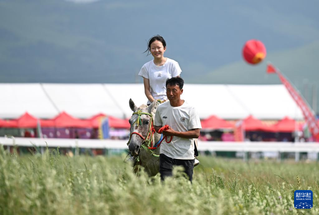17日、烏蘭毛都蘇木の民族スポーツ総合訓練拠点で乗馬を体験する観光客。(ヒンガン盟=新華社記者/貝赫)