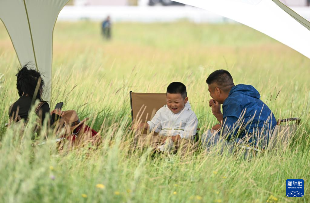 17日、烏蘭毛都蘇木の民族スポーツ総合訓練拠点でくつろぐ観光客。(ヒンガン盟=新華社記者/貝赫)