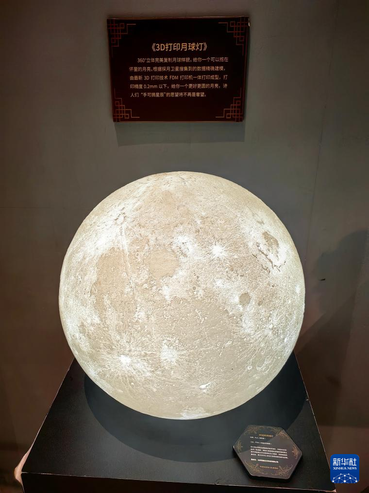 中国3Dプリント文化博物館で展示されている3Dプリントによる月球灯。(7月21日撮影、上海=新華社記者/呉寒氷)