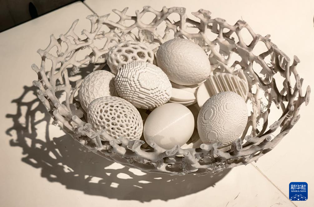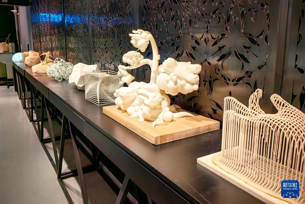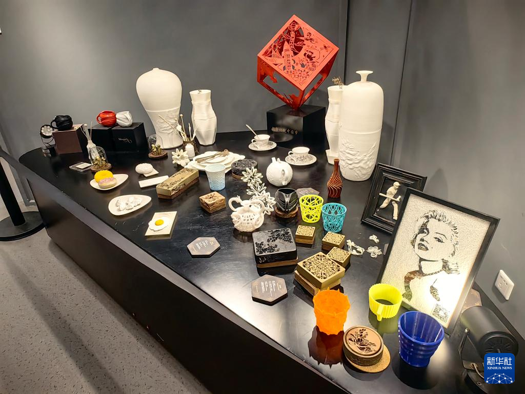 中国3Dプリント文化博物館で展示されている3Dプリント作品。(7月21日撮影、上海=新華社記者/呉寒氷)