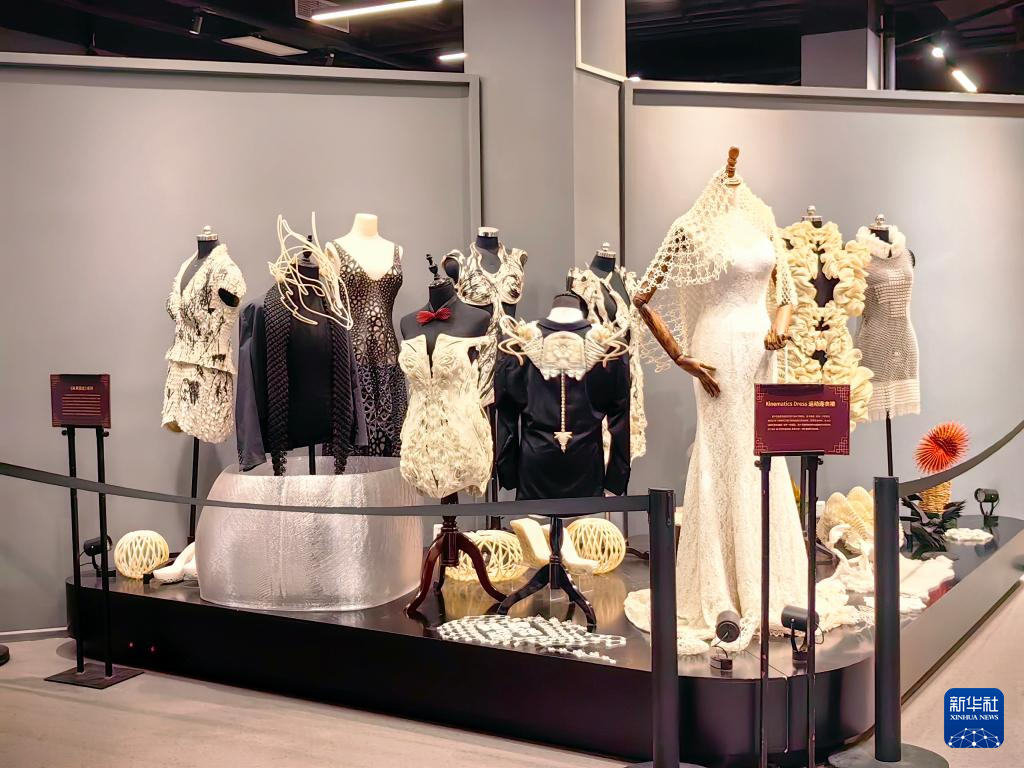 中国3Dプリント文化博物館で展示されている3Dプリントによる衣服。(7月21日撮影、上海=新華社記者/呉寒氷)