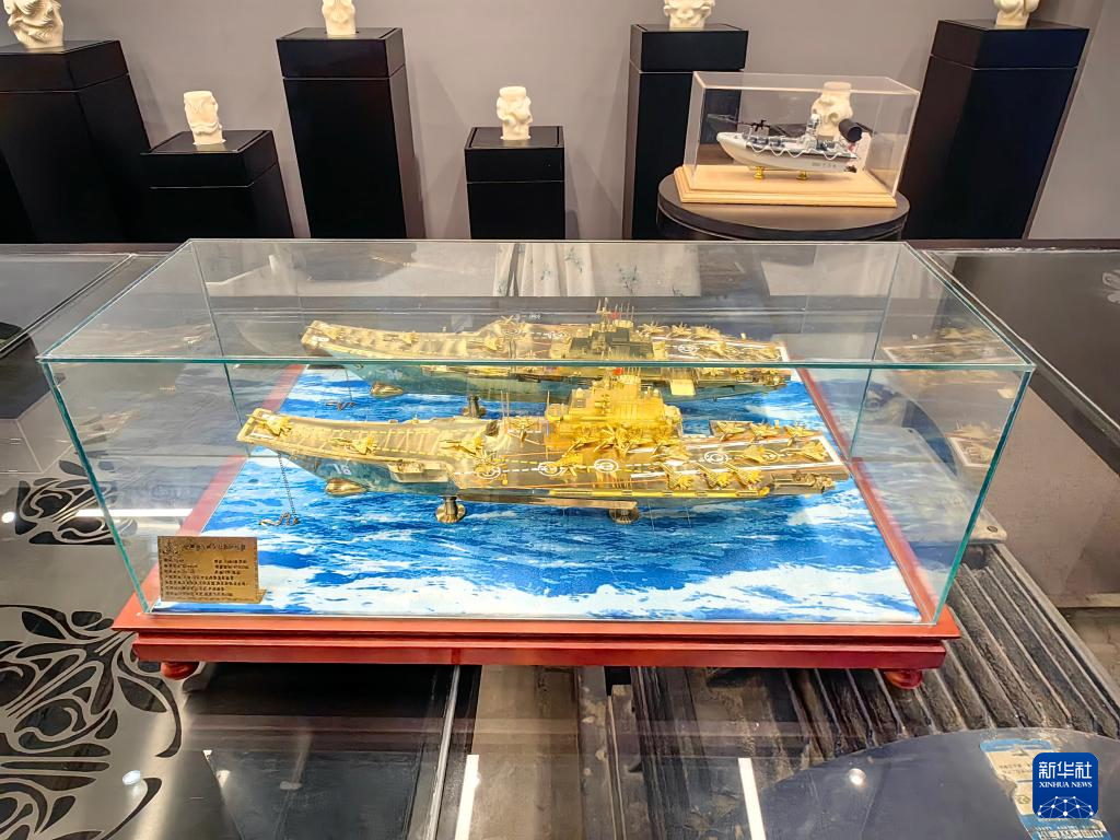 中国3D打印プリント博物館で展示されている3Dプリントによる艦船模型。(7月21日撮影、上海=新華社記者/呉寒氷)