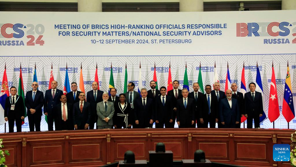 中国の王毅(おう・き)共産党中央政治局委員・中央外事工作委員会弁公室主任は11日、ロシアのサンクトペテルブルクで、BRICSと「グローバルサウス」諸国の安全保障担当上級代表による対話会に出席した。(サンクトペテルブルク=新華社配信)