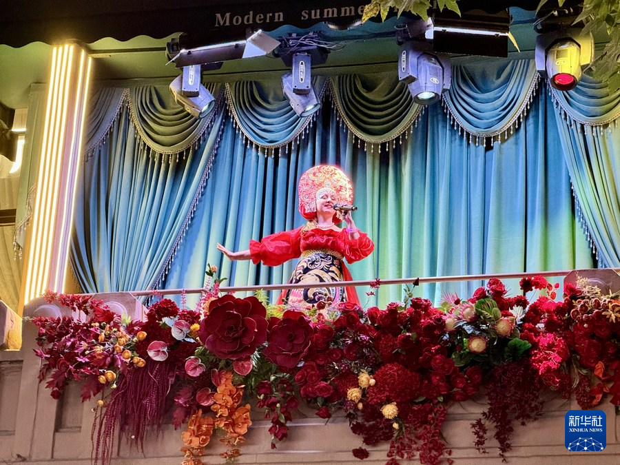 14日、ハルビン市の中央大街でパフォーマンスを披露する演者。(ハルビン=新華社記者/劉赫垚)