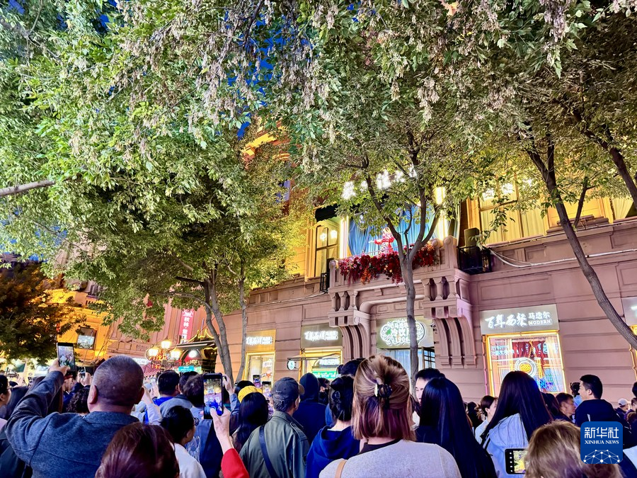 【新華社ハルビン9月17日】中国黒竜江省ハルビン市で1898年に建設された中央大街は、今や都市の名刺となり、地元の人々や観光客に人気の街歩きスポットでもある。中秋節(旧暦8月15日、今年は9月17日)連休の現在、中央大街は多くの人でにぎわい観光のピークを迎えている。