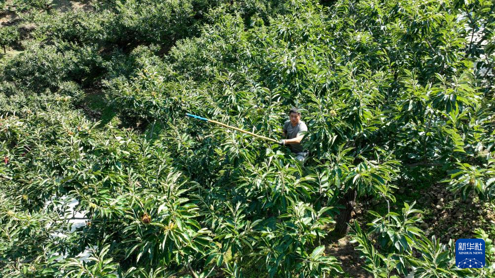 19日、寛城満族自治県碾子峪鎮に広がるクリ畑。(ドローンから、承徳=新華社配信/王立群)
