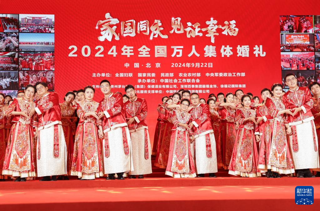 【新華社北京9月23日】中国の中華全国婦人連合会(全国婦連)、国家民族事務委員会、民政部、農業農村部、中央軍事委政治工作部が22日、合同結婚式を共催した。全国の各省区市と香港・マカオ・台湾地区から5100組余りの新郎新婦が集まり、中国式の婚礼に参加した。