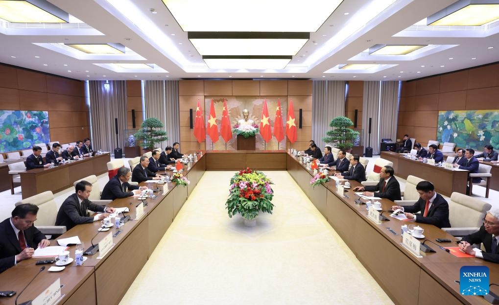 中国の李強(り・きょう)国務院総理は13日、ベトナム・ハノイで同国のチャン・タイン・マン国会議長と会談した。(ハノイ=新華社記者/李濤)
