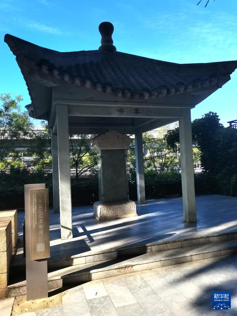 匯通祠の乾隆帝詩碑と詩亭。(9月22日撮影、北京=新華社記者/王巍)