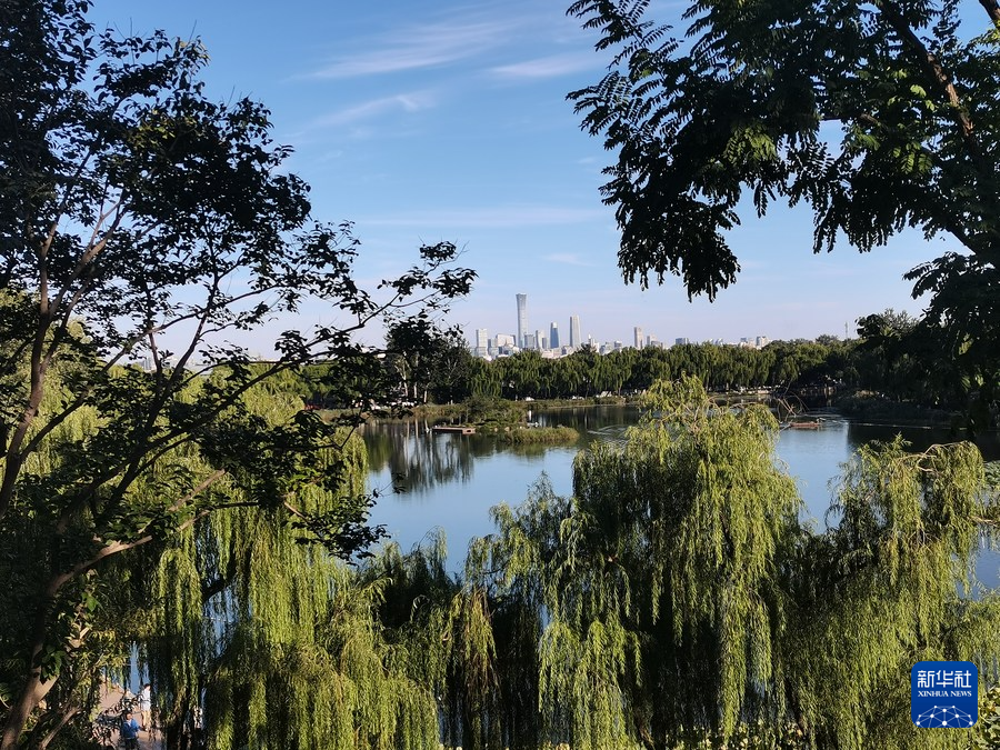匯通祠から望む北京商務中心区(CBD)。(9月22日撮影、北京=新華社記者/王巍)