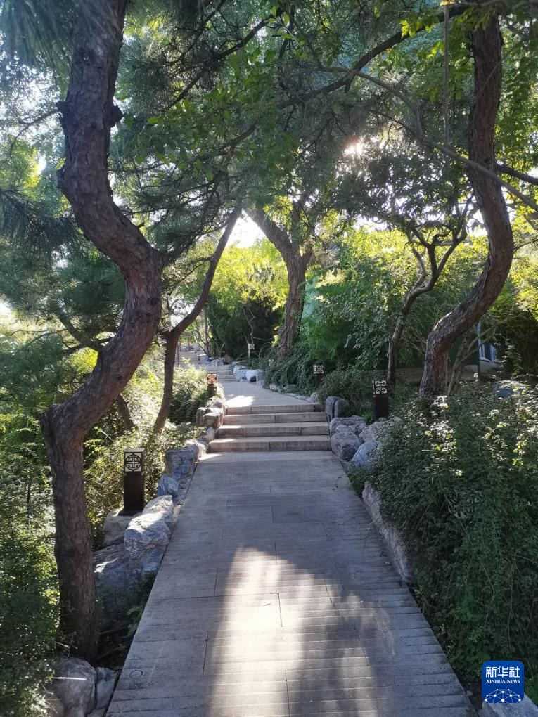 匯通祠乾隆帝詩碑近くの山道。(9月22日撮影、北京=新華社記者/王巍)