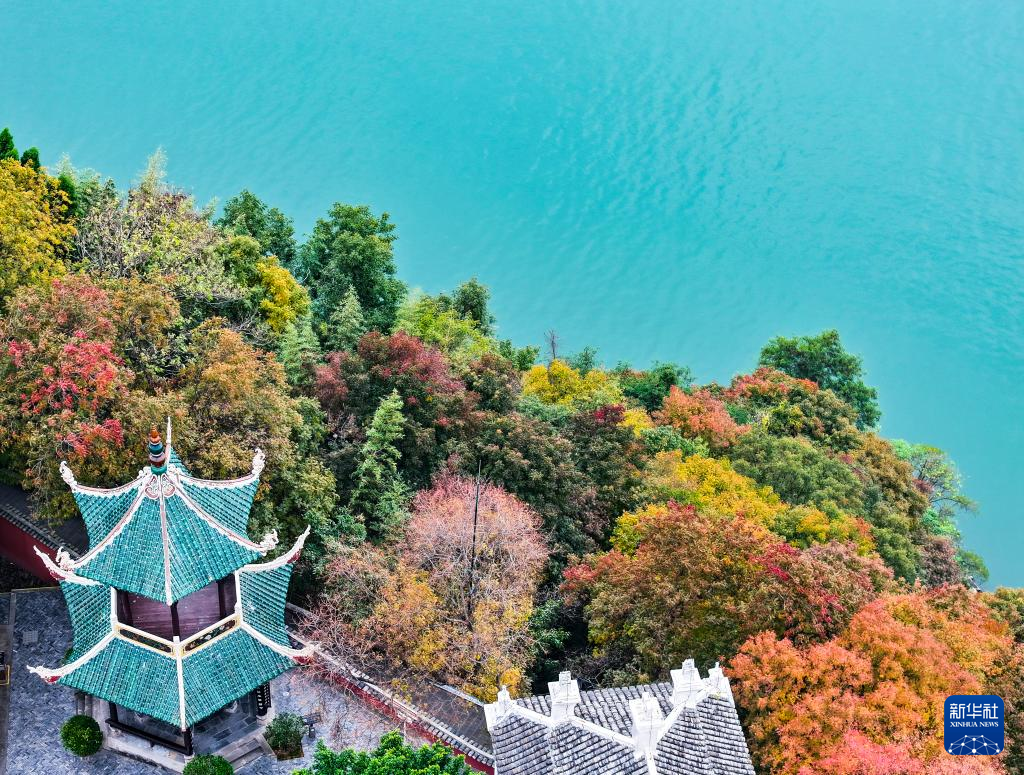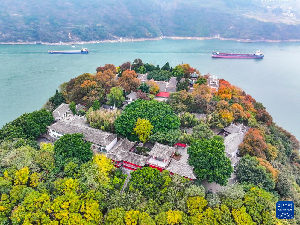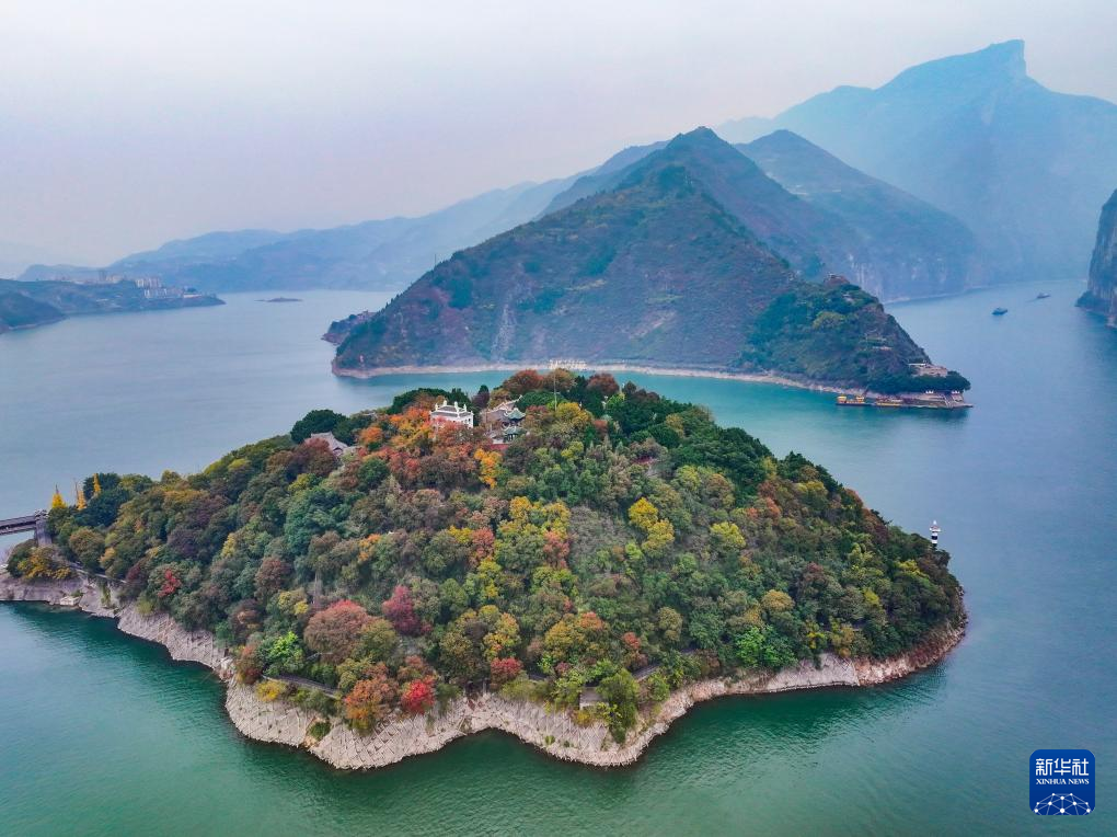 19日、重慶市奉節県の瞿塘峡に広がる景色。(ドローンから、重慶=新華社記者/王全超)