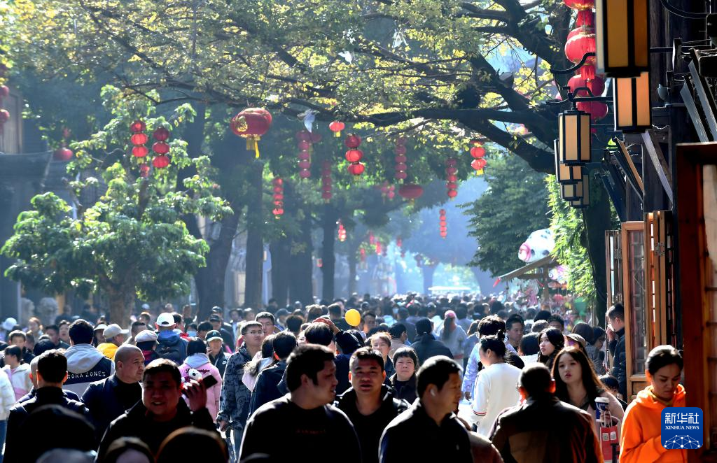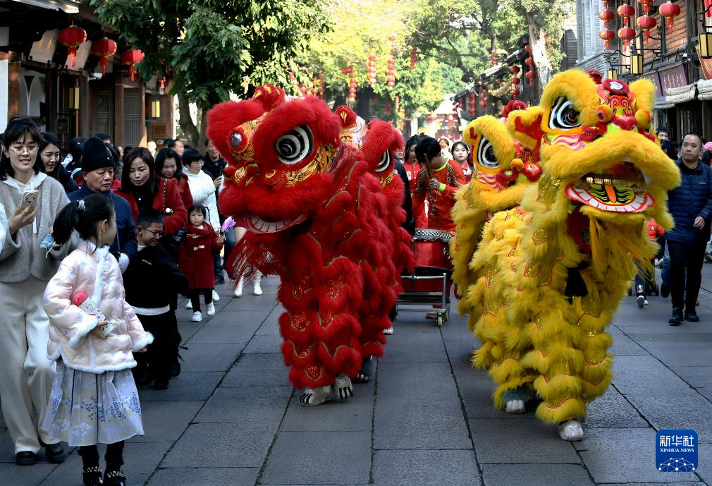 【新華社福州1月4日】中国福建省福州市の歴史文化街区「三坊七巷(さんぼうしちこう)」は1日、獅子舞や伝統衣装のショーを楽しむ市民や観光客でにぎわった。
