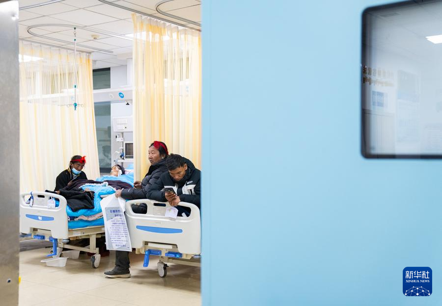 8日未明、シガツェ市人民医院で治療を受ける負傷者。(ラサ=新華社記者/丁増尼達)