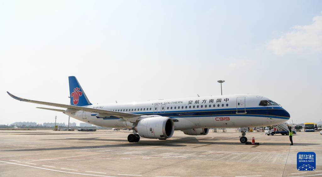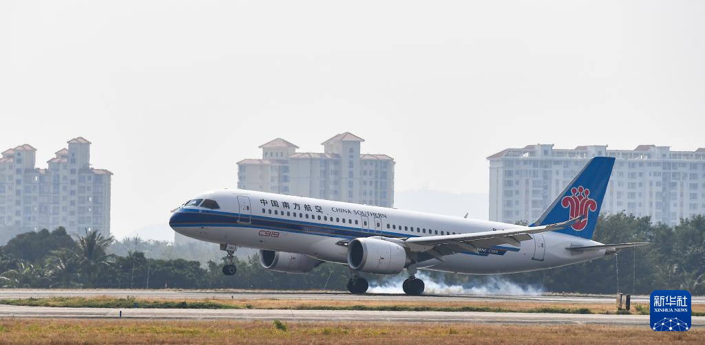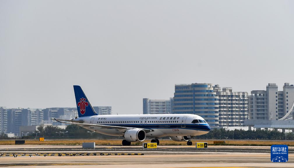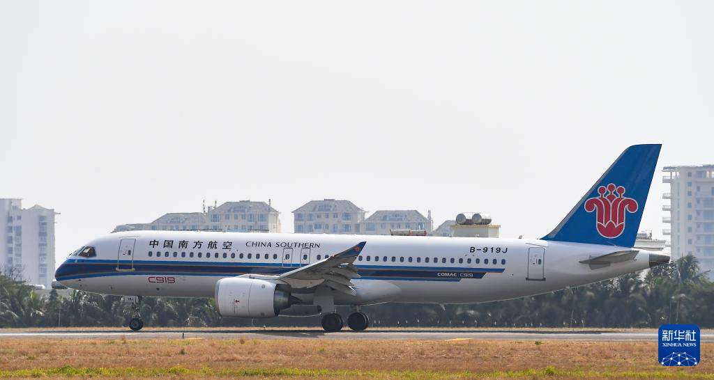 【新華社三亜1月11日】中国の国産大型旅客機「C919」が10日、中国南方航空CZ6744便として旅客112人を乗せ海南省三亜市の三亜鳳凰国際空港に着陸、商業運航を開始した。中国南方航空がC919を広州(広東省)-三亜路線に投入するのは、今回が初めて。pagebreak