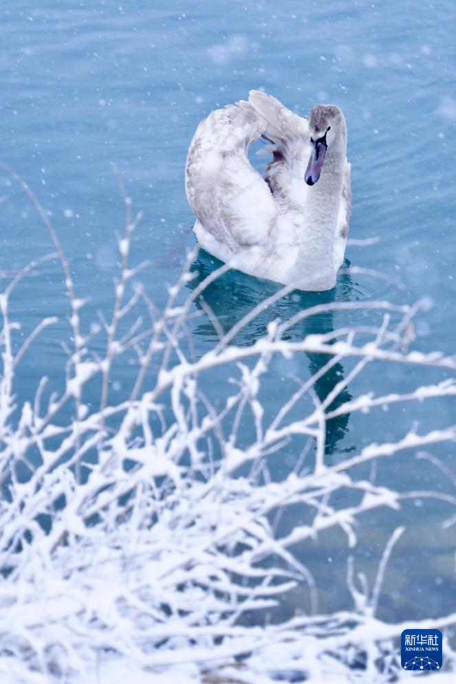 8日、天鵝泉湿地公園で撮影したハクチョウ。(伊寧=新華社記者/杜涓涓)pagebreak