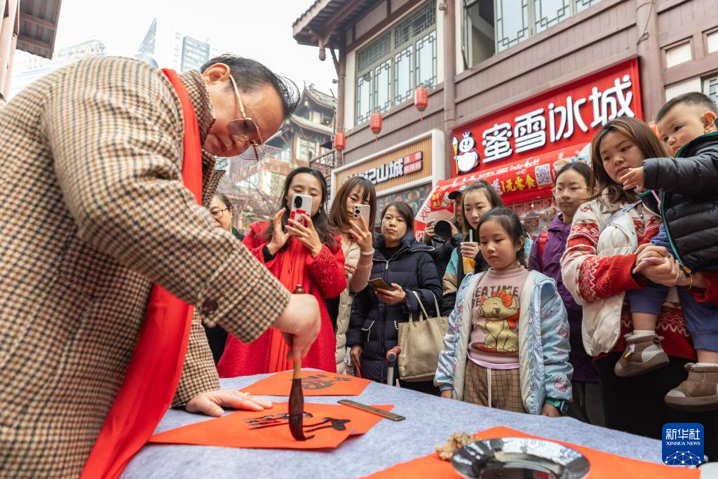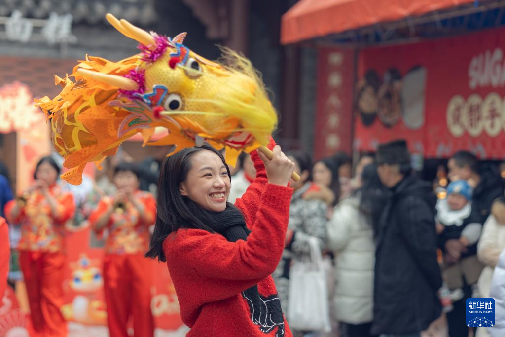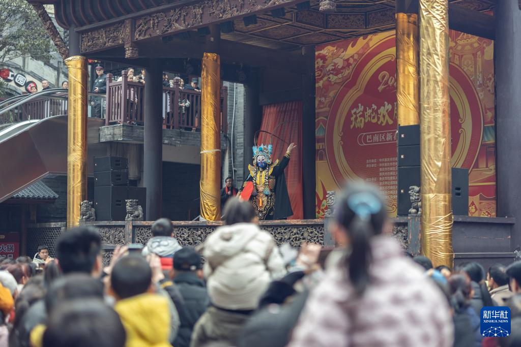 【新華社重慶1月24日】春節(旧正月、今年は1月29日)を前に、中国重慶市巴南区の西流沱小鎮では色鮮やかな装飾の下、同区木洞鎮で歌われている「木洞山歌」や姜家鎮一帯に伝わる「姜家竜舞」などの無形文化遺産が観光客らを楽しませた。pagebreak