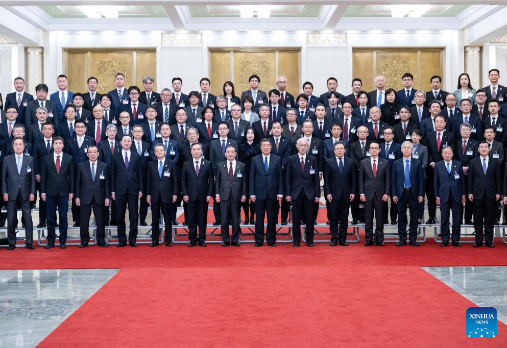 中国の何立峰(か・りつほう)共産党中央政治局委員・国務院副総理は17日、日本の経済界訪中団と北京の人民大会堂で会見した。(北京=新華社記者/翟健嵐)