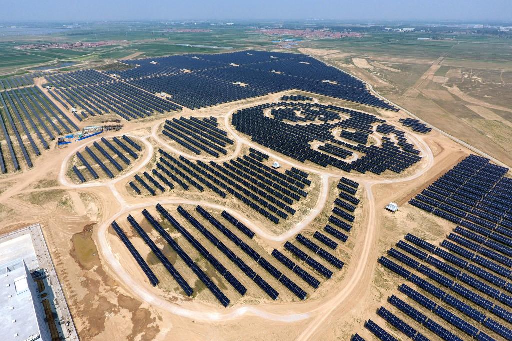 山西省大同市雲州区にあるパンダ形の太陽光発電所。(大同=新華社記者/詹彦)