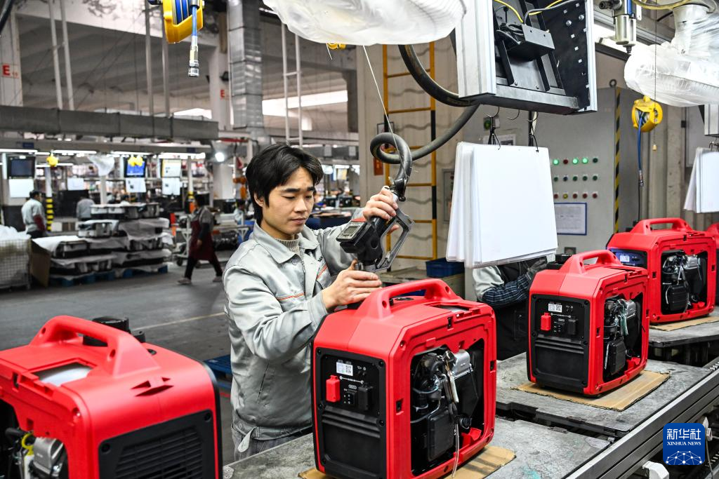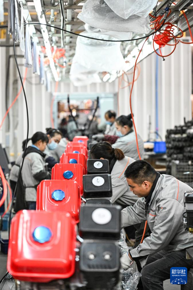 22日、重慶華世丹機械製造のインバーター発電機の生産ラインで働く作業員。(重慶=新華社記者/王全超)pagebreak