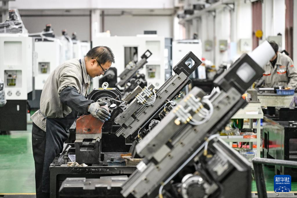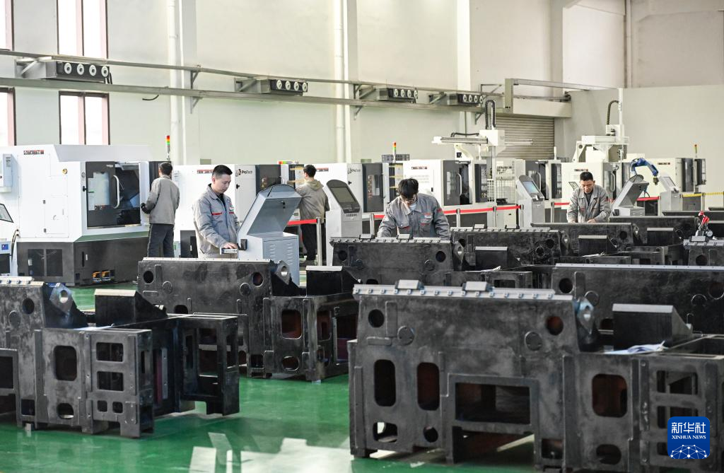 22日、重慶宏鋼数控機床の工場で働く作業員。(重慶=新華社記者/王全超)
