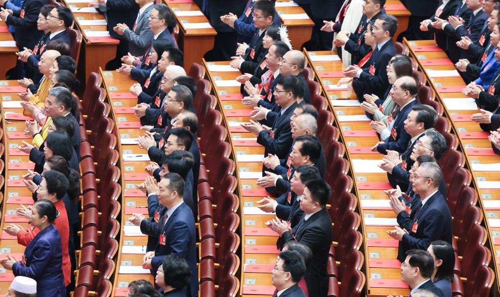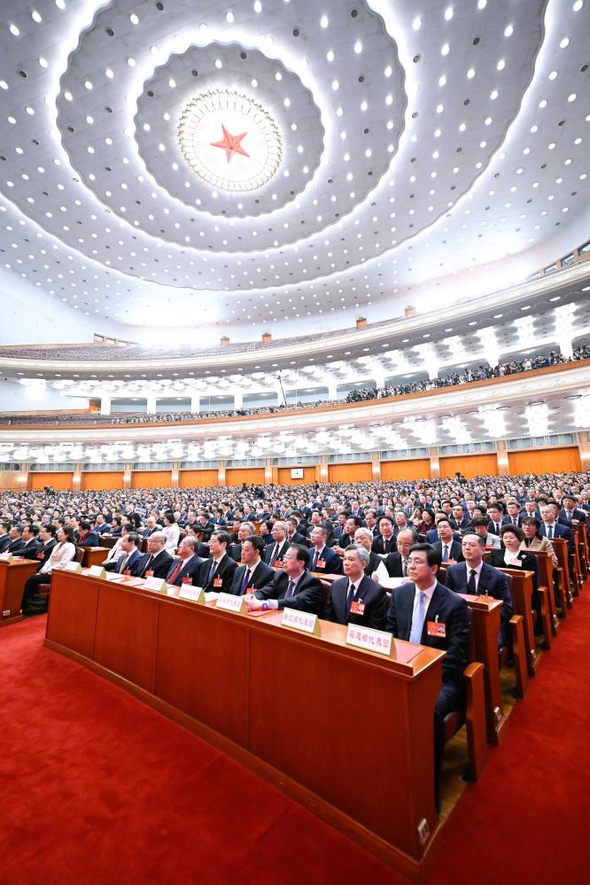 中国第14期全国人民代表大会(全人代)第3回会議の閉幕会議が11日、北京の人民大会堂で開かれた。(北京=新華社記者/翟健嵐)