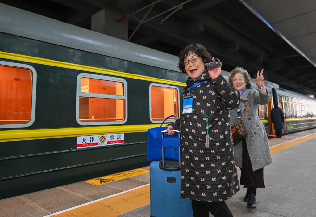 【新華社天津3月18日】中国天津市の天津駅で15日、京津冀(北京・天津・河北2市1省)地域と粤港澳大湾区(広東・香港・マカオグレーターベイエリア)を結ぶシニア層に特化した「シルバー観光列車」の出発式があり、列車は12日間の南北文化交流の旅を開始した。