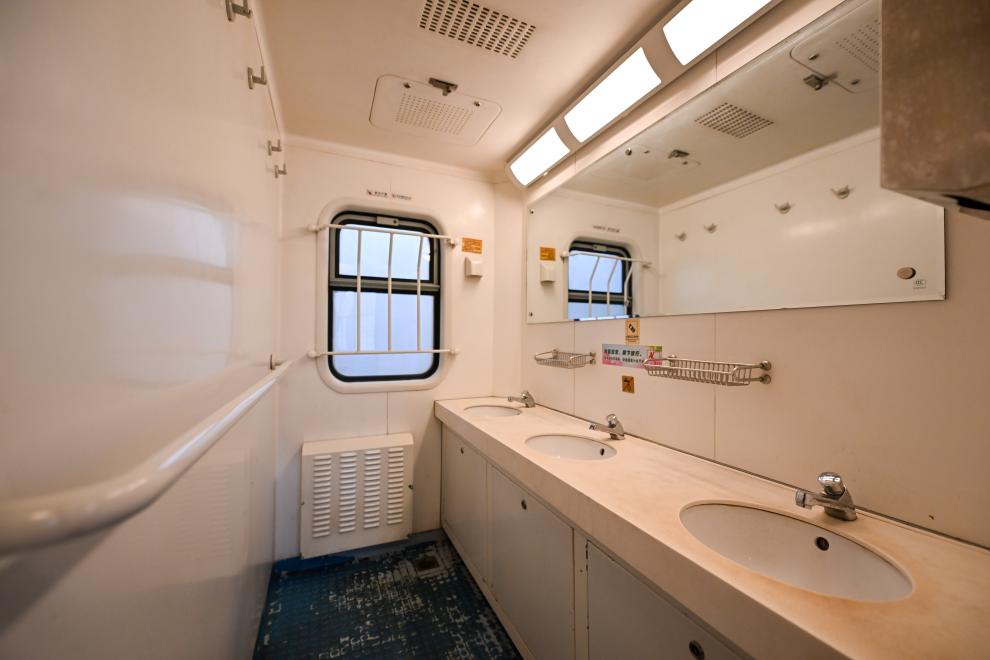 15日、シルバー観光列車「京鉄楽遊」号のバリアフリートイレ。(天津=新華社記者/孫凡越)
