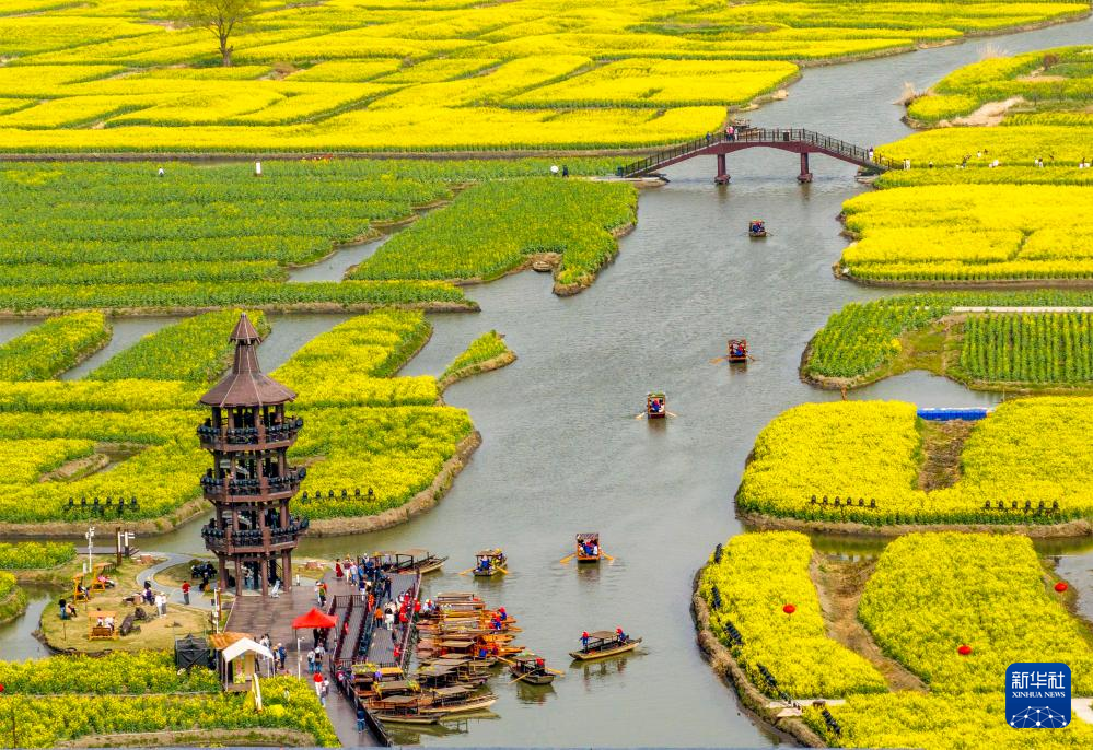 【新華社興化3月26日】中国江蘇省興化市の千垜(せんだ)風景区で菜の花が見頃を迎えた。黄金色の花畑と縦横に交差する川が独特の風景を織り成し、訪れた人々の目を楽しませている。pagebreak