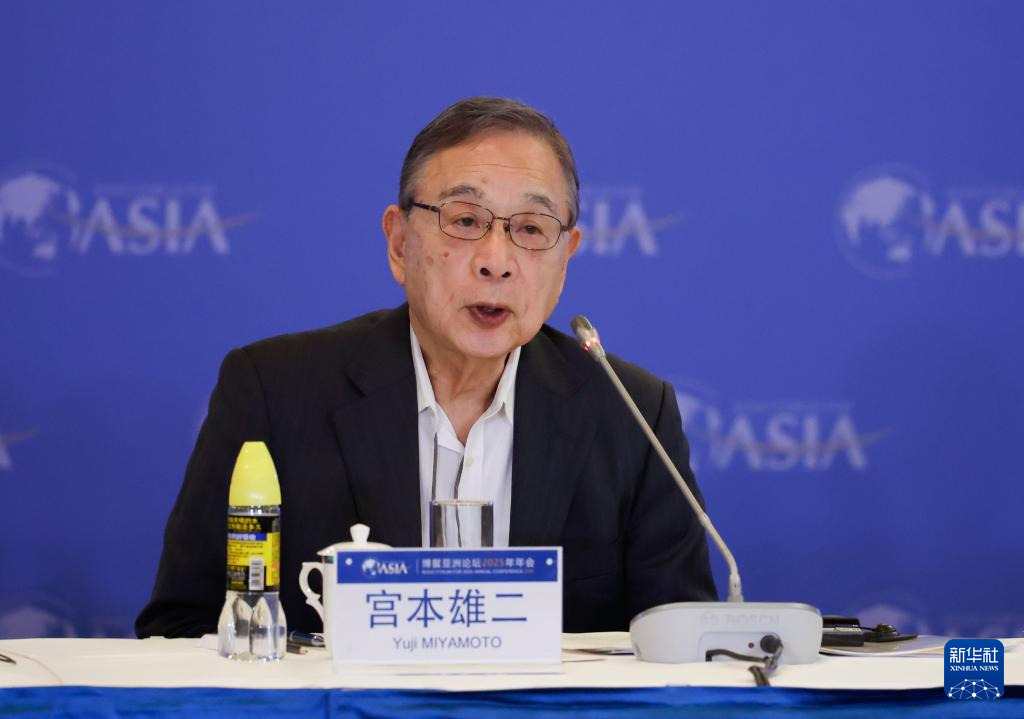 26日、中日企業家対話会を主宰する宮本雄二元駐中国大使。(ボアオ=新華社記者/杜瀟逸)
