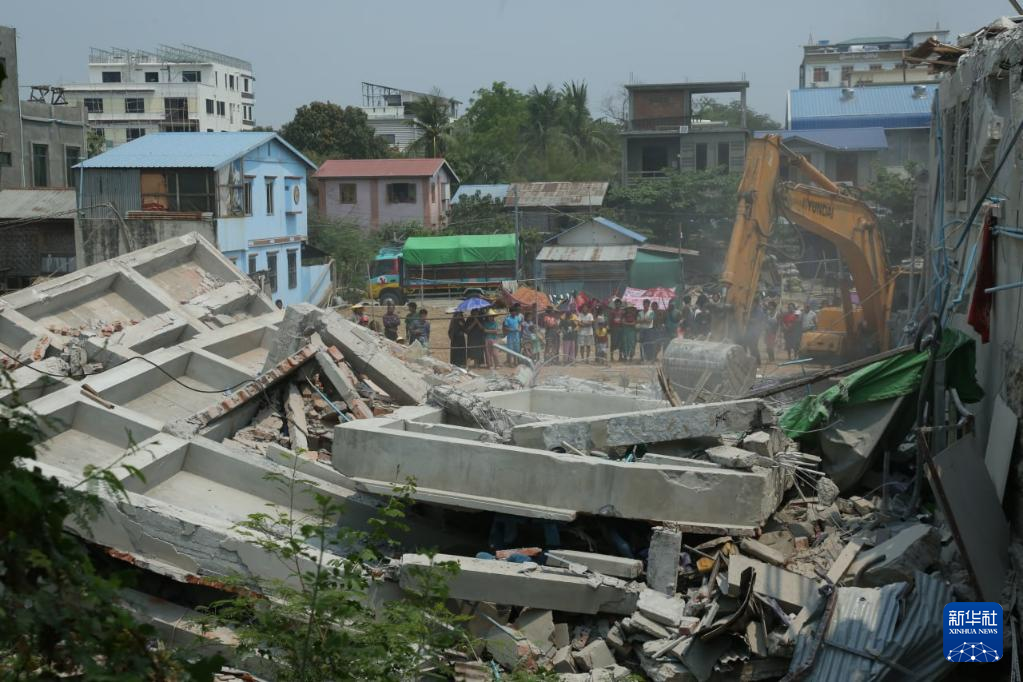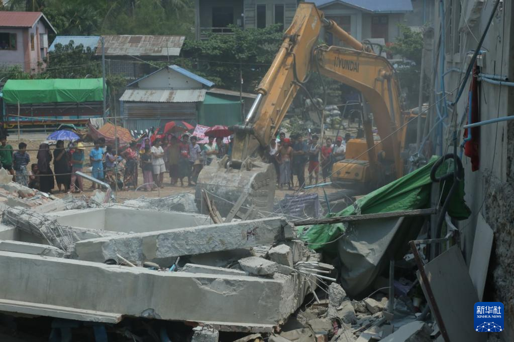 29日、ミャンマー・マンダレーで撮影した救助活動の様子。(マンダレー=新華社配信)