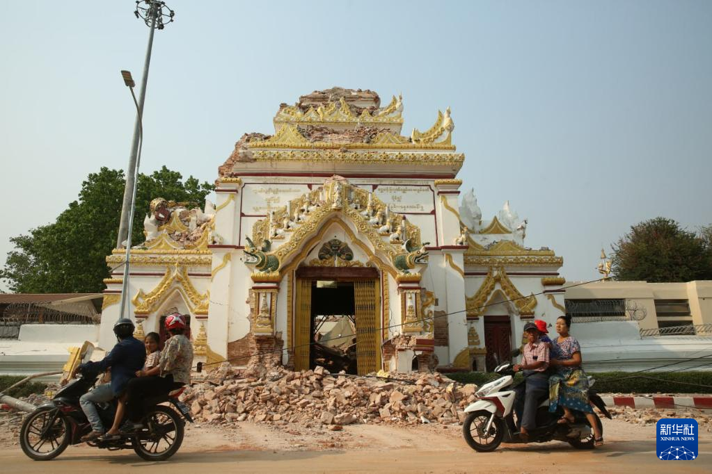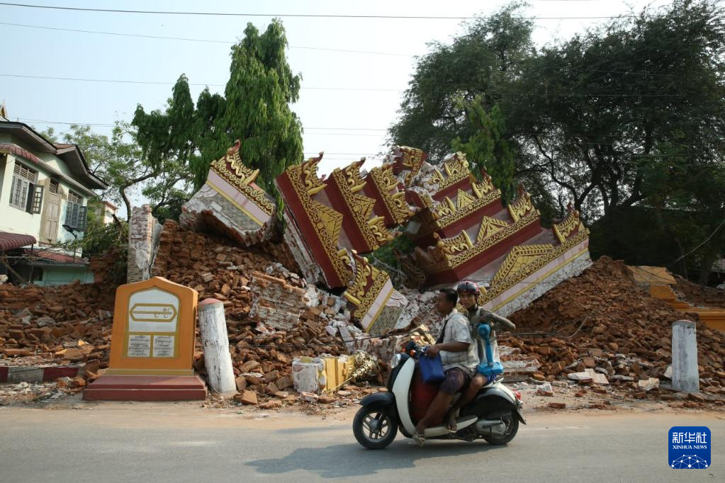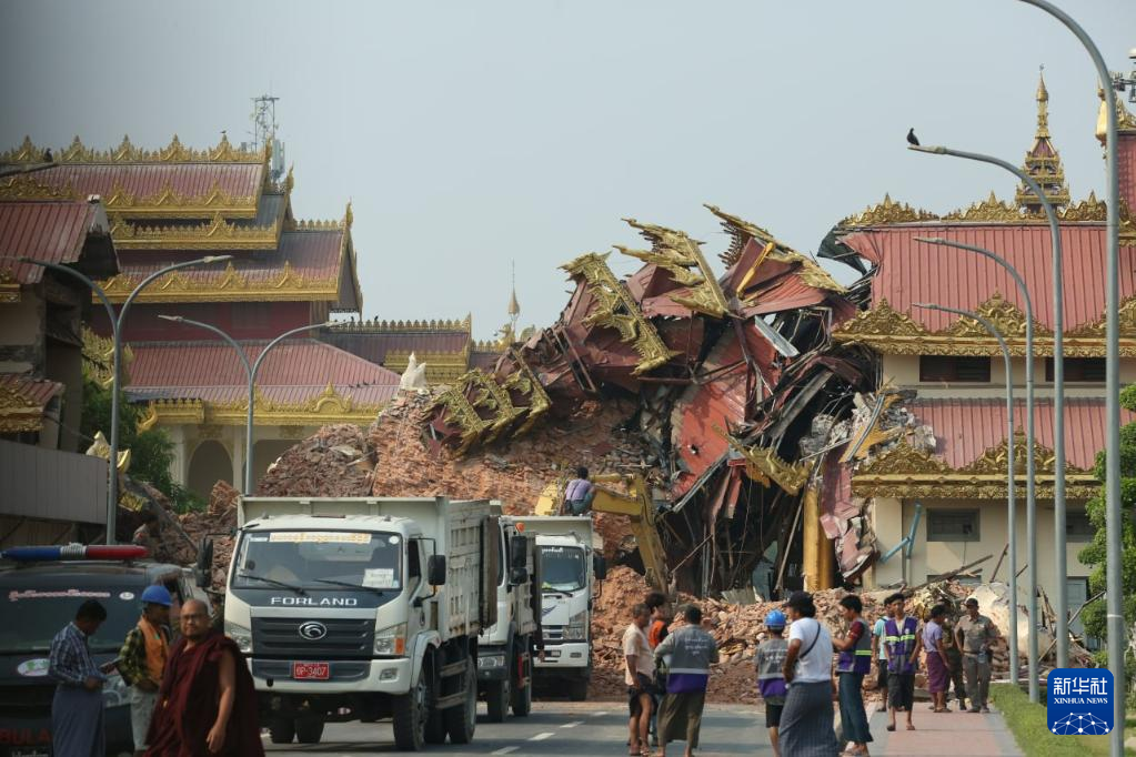 29日、ミャンマー・マンダレーで倒壊した建物。(マンダレー=新華社配信/苗覚梭)