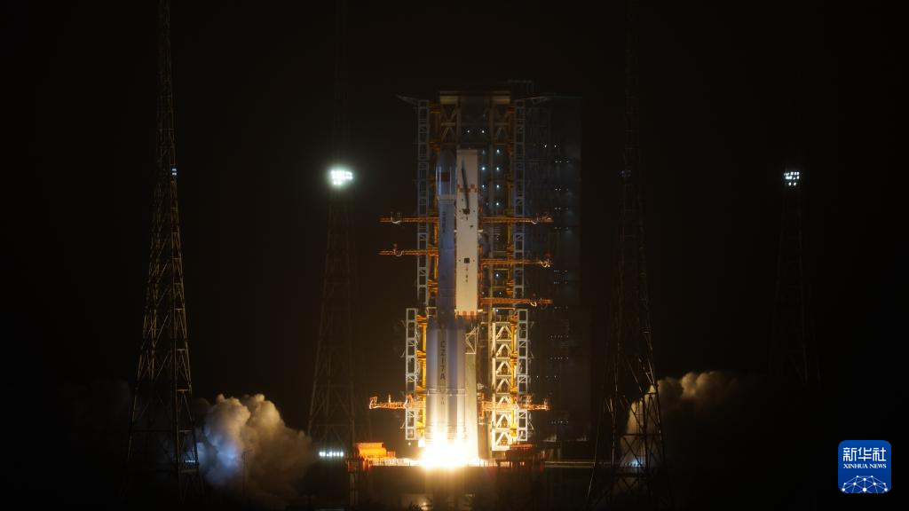中国は30日午前0時5分(日本時間同1時5分)、通信技術試験衛星16号を搭載した運搬ロケット「長征7号改」を海南省の文昌宇宙発射場から打ち上げた。衛星は予定の軌道に投入され、打ち上げは成功した。(文昌=新華社配信/孫鈺程)