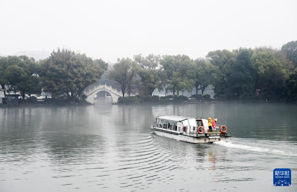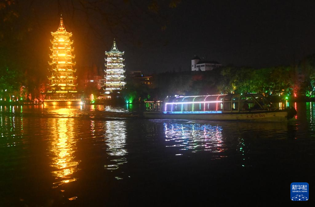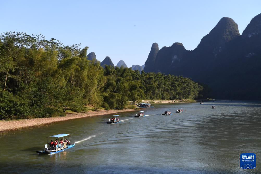 桂林の杉湖を航行する遊覧船。(3月12日撮影、桂林=新華社記者/陸波岸)
