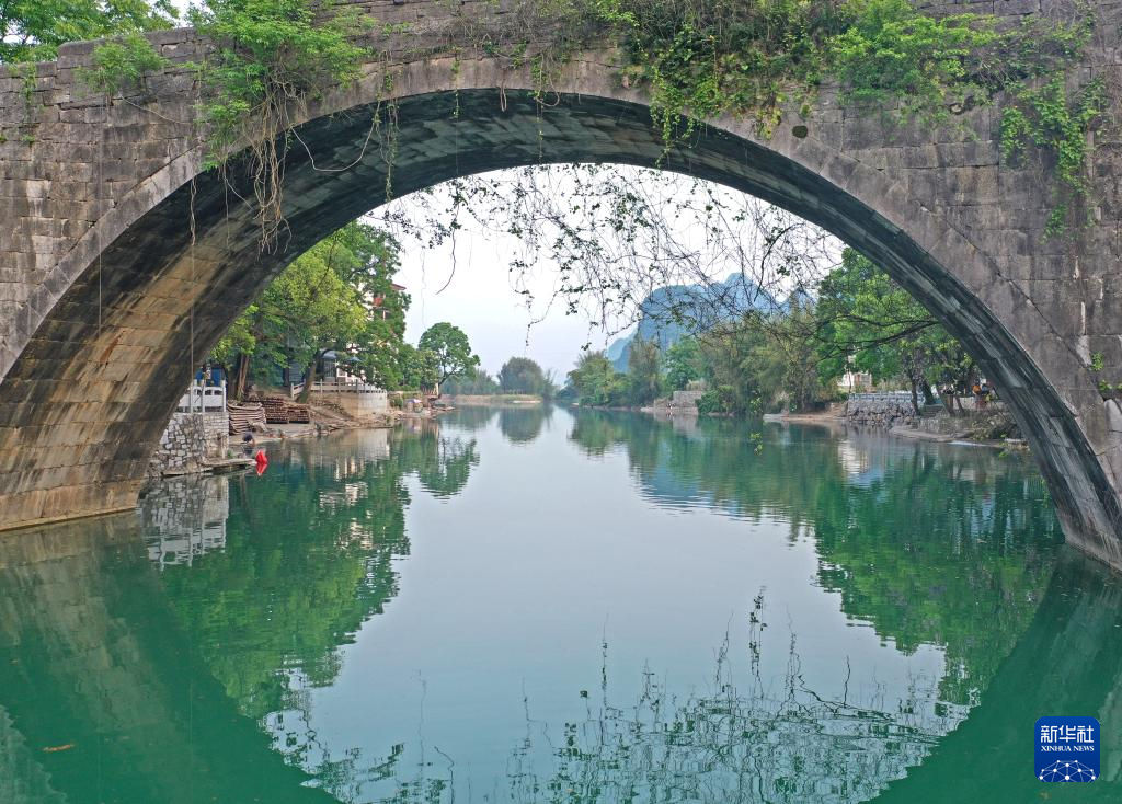 桂林市陽朔県の遇竜河。(2022年4月11日、ドローンから、桂林=新華社記者/周華)