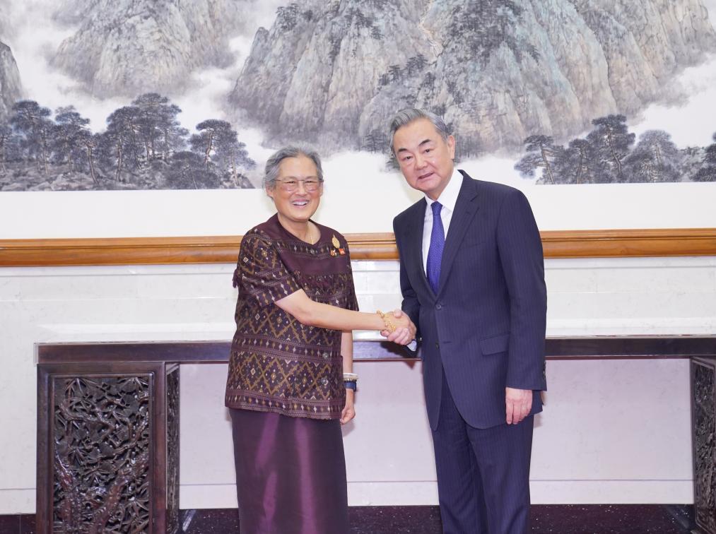 中国の王毅(おう・き)共産党中央政治局委員・外交部長は11日、タイのシリントン王女と北京で会見した。(北京=新華社記者/岳月偉)