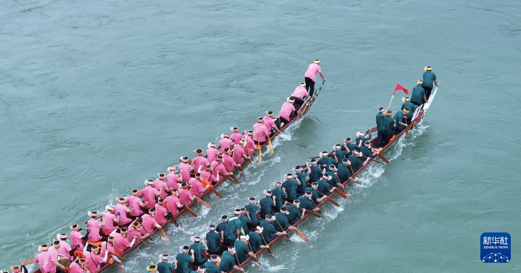 13日、景洪市で行われたドラゴンボートレース。(景洪=新華社配信)