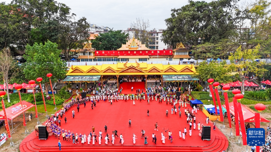 13日、雲南省西双版納ダイ族自治州で開かれた、ダイ暦1387年の新年祝賀大会。(昆明=新華社配信)
