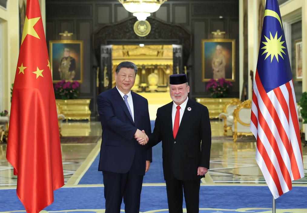 中国の習近平(しゅう・きんぺい)国家主席は16日、マレーシアの王宮で同国最高元首のイブラヒム国王と会談した。(クアラルンプール=新華社記者/黄敬文)